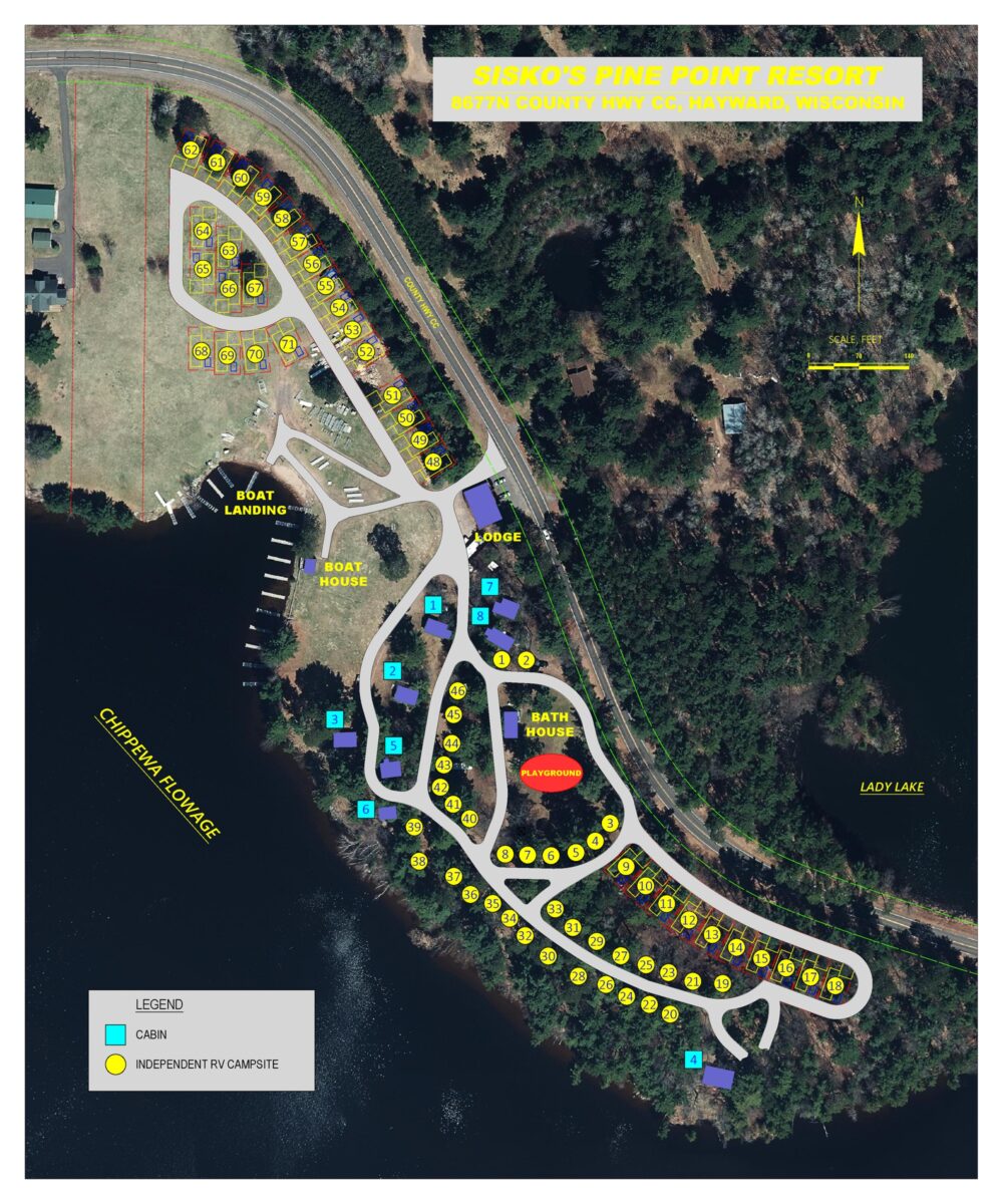 Cabins 1, 2, 3, 4, 5, and 6 overlook the Chippewa Flowage. Cabins are surrounded by beautiful old growth white pines.